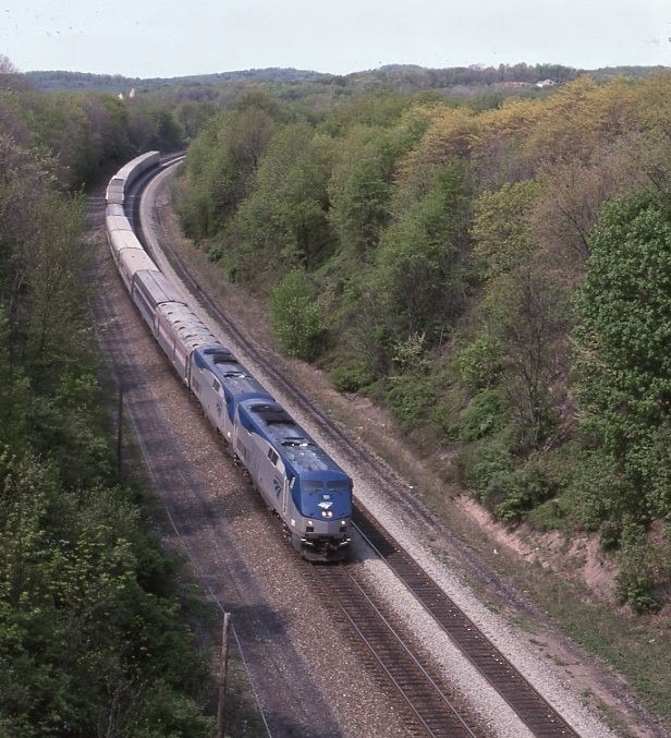 Amtrak | on Norfolk Southern | Latrobe, Pennsylvania | GE P42B #191 and #189 diesel-electric locomotives | eastbound Three Rivers passenger train | April 30, 2003 | Dick Flock photograph / collection
