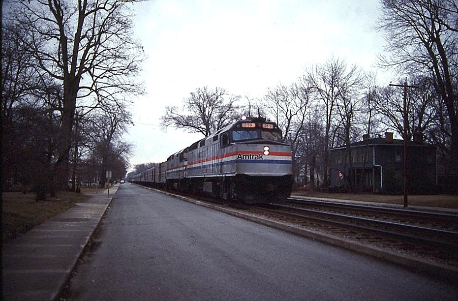 Amtrak | on RF&P | Ashland, Virginia | EMD F40PH #359 + 1 diesel-electric locomotives | Silver Meteor | February 17, 1992 | Henry Bielstein photograph / collection