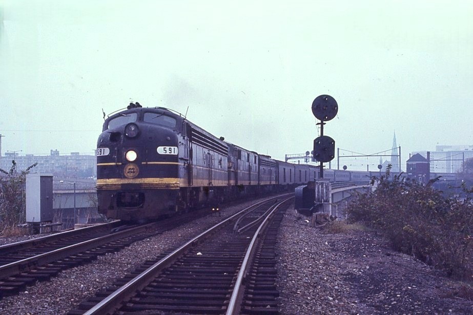 Amtrak | Seaboard Coast Line | Washington, D.C. | EMD E8a #591, E7B and E8A diesel electric locomotives | Silver Meteor | October 1971 | Will Coxey photograph / collection