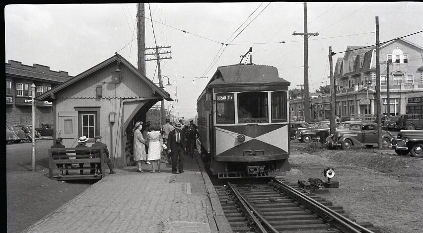 Atlantic City and Shore Railway | aka Shore Fast Line | Pleasantville, New Jersey | Interurban streetcar | Pleasantville station | Washington, DC Chapter fan trip | May 1942 | Henry Libby photograph / collection
