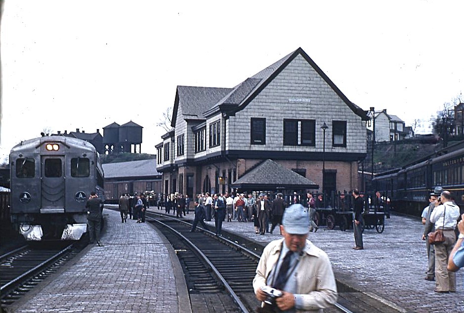 Baltimore an d Ohio Railroad | Connellsville, Pennsylvania | Budd RDC “Speedliner” NRHS Excursion | Connellsville Passenger Station | April 20, 1952 | Henry Libby photograph / collection