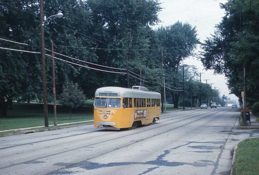 Baltimore Transit Company | Towson, Maryland | PCC Streetcar #7105 | Route 8 | Inbound at York near Burke | August 31, 1960 | Al Holtz photograph / collection