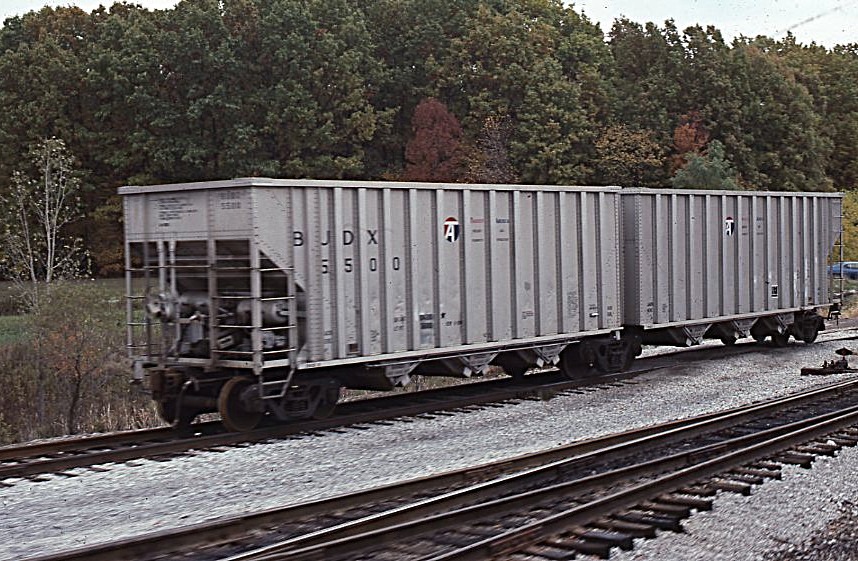 BUDX | Budd Company | Brewster, Ohio | Articulated hopper car #5500 | October 12, 1991 | Dick Flock photograph / collection