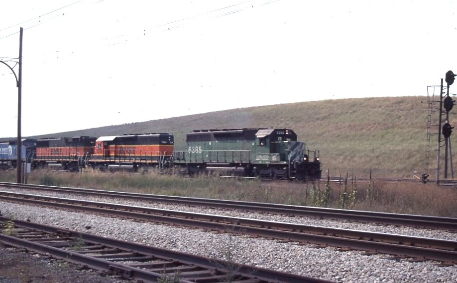 Burlington Northern Sante Fe Railroad | BNSF | Gary, Indiana | EMD SD40-2 #6385 + 3 diesel-electric locomotive | eastbound freight | August 10, 2002 | Mitchell E. Dakelman / collection