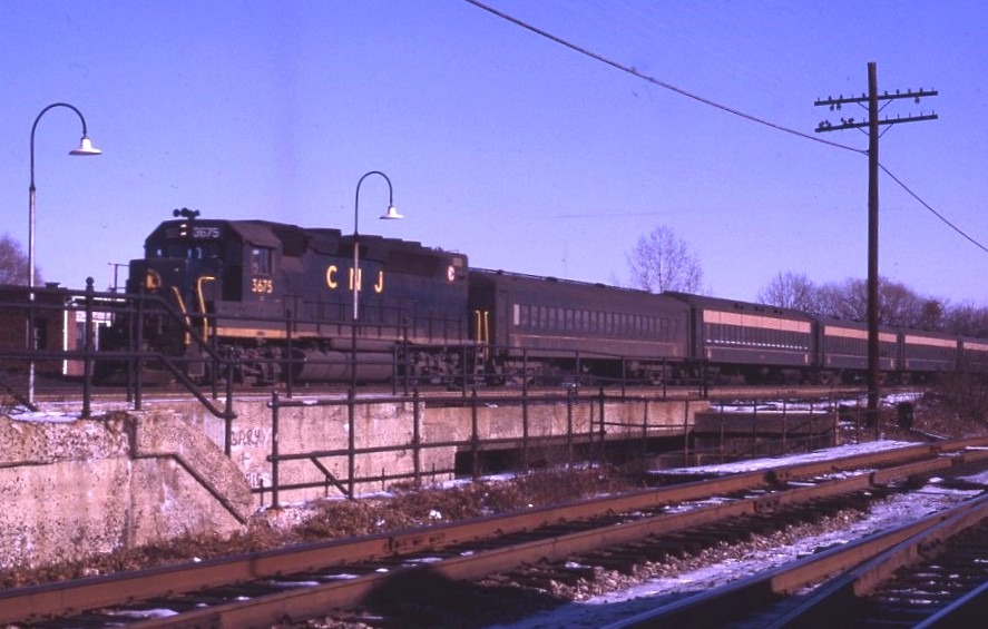 Central Railroad of New Jersey | Bound Brook, New Jersey | EMD GP40P #3675 diesel-electric locomotive | commuter train | January 1971 | Ken Kulick photograph / collection