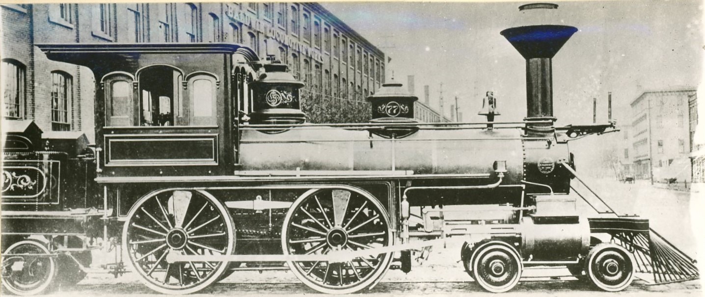 Central Railroad of New Jersey | Eddystone, Pennsylvania | Baldwin class 4-4-0 #77 steam locomotive | 1869 | Baldwin Locomotive Works photograph | Warren Crater, Friends of the New Jersey Transportation Museum collection