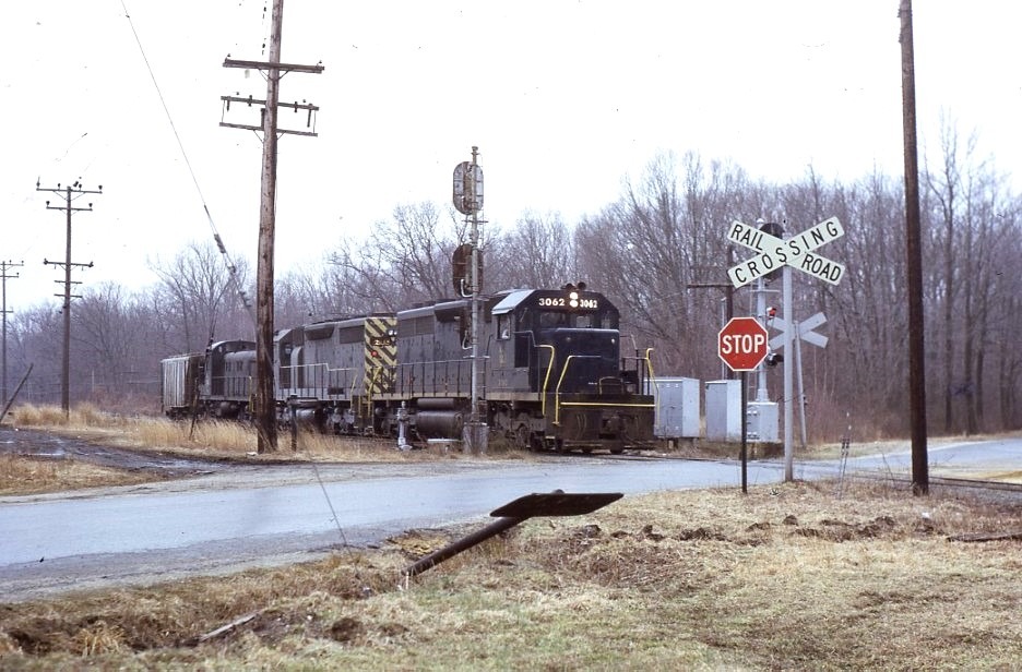 Central Railroad of New Jersey | Farmingdale, New Jersey | EMD SD40 #3062, SD35 and Alco RS3 diesel-electric locomotives | freight | March 1972 | Ken Kulick photograph | collection