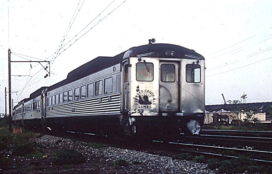 Central Railroad of New Jersey | Newark, New Jersey | RDC1 #553 + 3 westbound commuter train | on Lehigh Valley Railroad | June 1967 | Gerald Landau photograph | Morning Sun Books collection