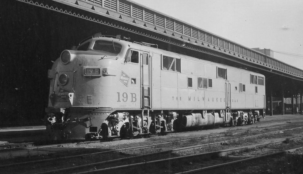 Chicago, Milwaukee, Saint Paul and Pacific Railroad | aka Milwaukee Road | Milwaukee, Wisconsin | EMD E7a #19B diesel-electric locomotive | October 23, 1963 | Arthur B. Johnson photograph | Elmer Kremkow collection