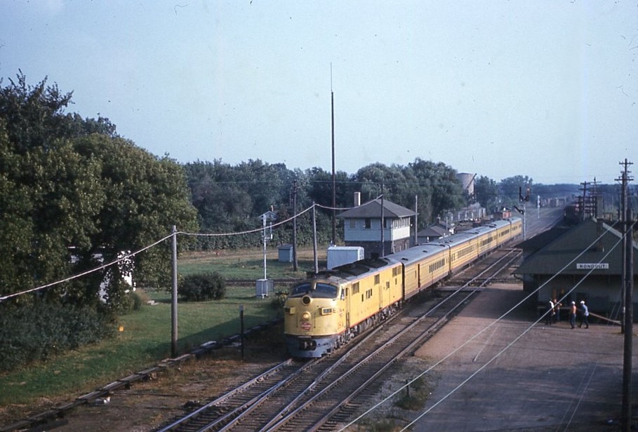 Chicago, Milwaukee, Saint Paul and Pacific Railroad | Milwaukee Railroad | Rondout, Illinois | EMD E7a #18A | Train 143 | with Station and Tower | September 7, 1960 | Al Holtz photograph / collection
