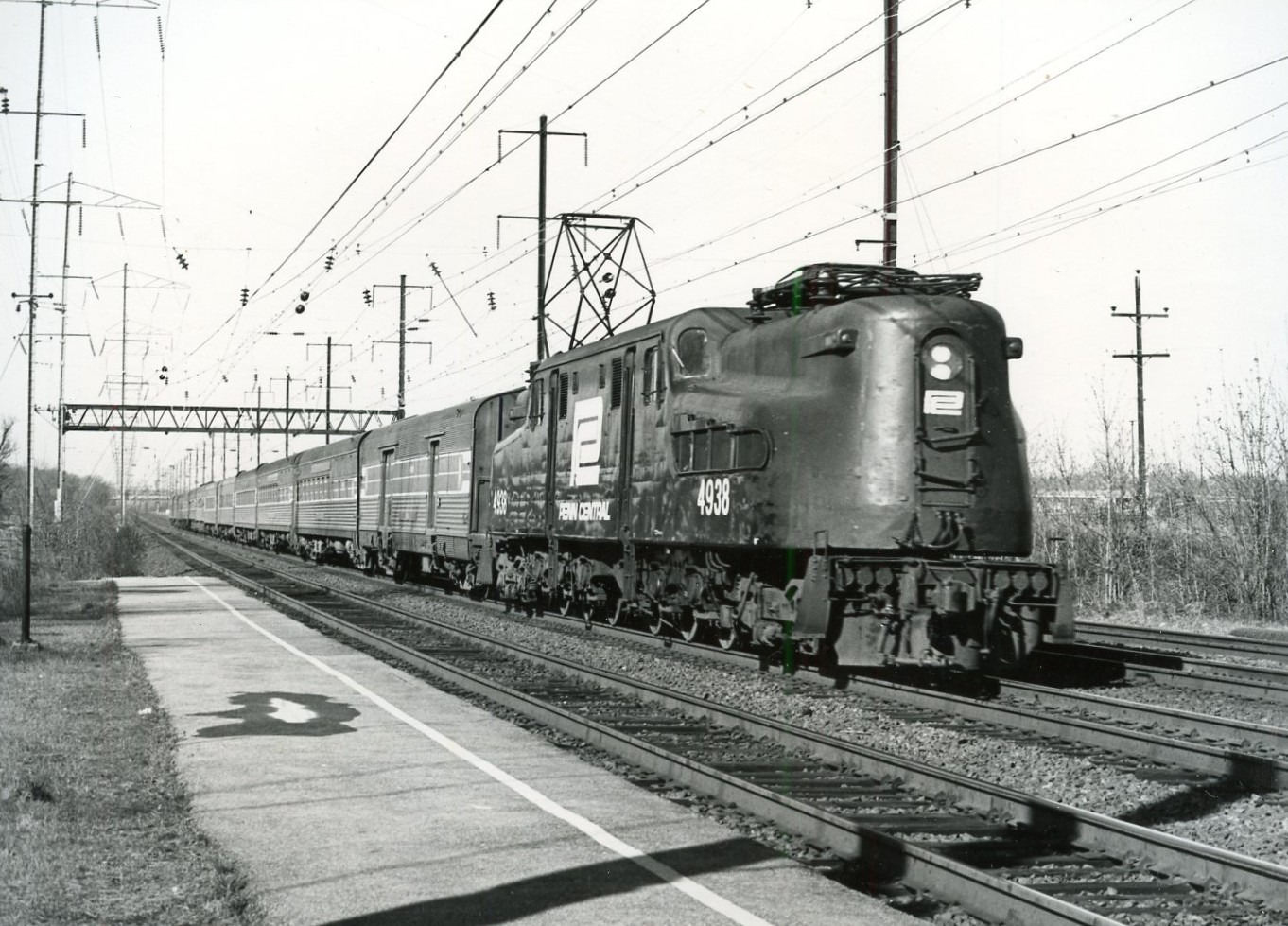 Amtrak | Cornwell Heights, Pennsylvania | Altoona Works Penn Central GG1 #4938 electric motor | Train 40 Broadway Limited | April 1974 | Will Coxey photograph / collection