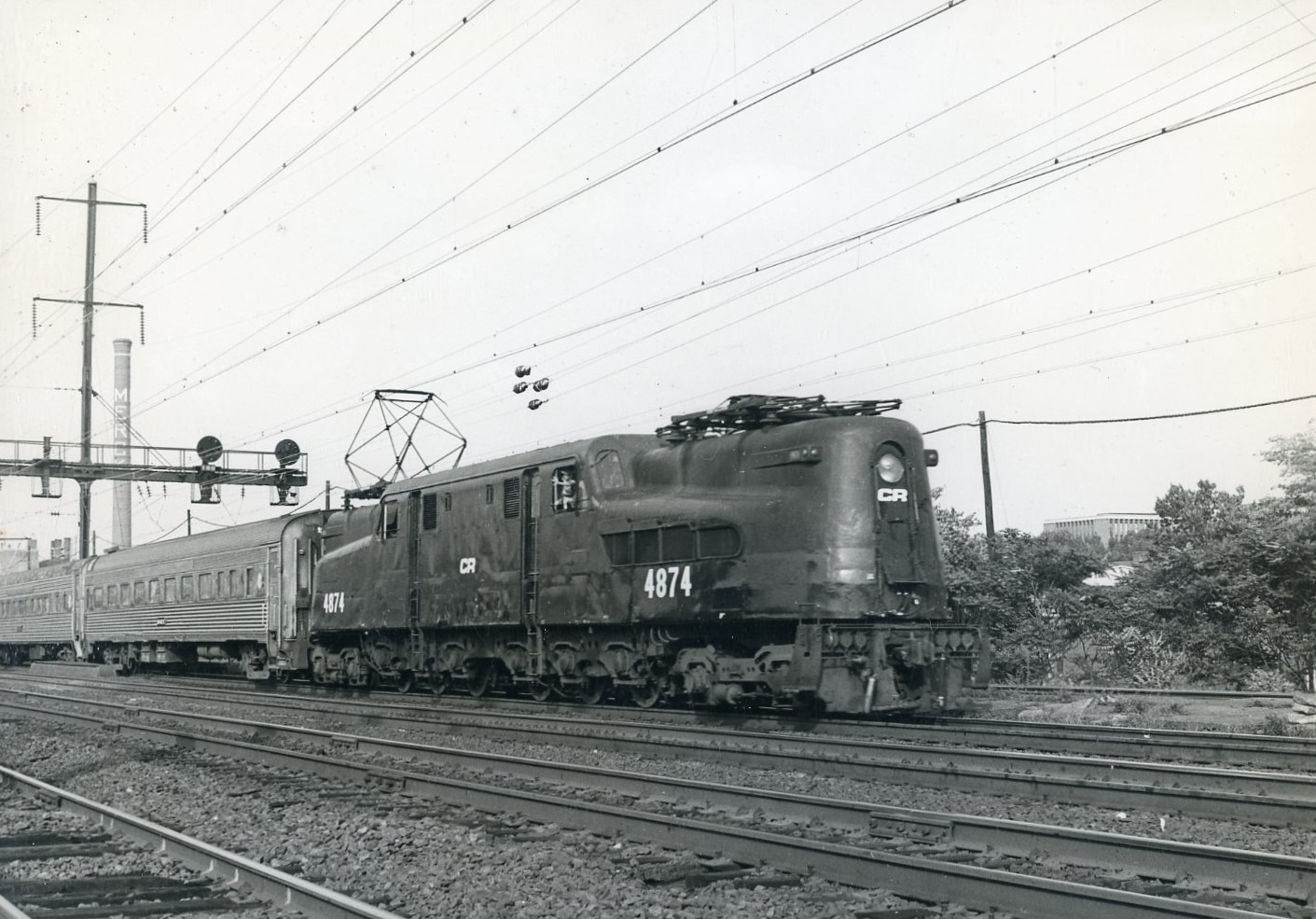 Conrail | Rahway, New Jersey | Altoona Works class GG1 #4874 motor | NY to Bayhead commuter train | August 1976 | Ed Kaspriske photograph / collection