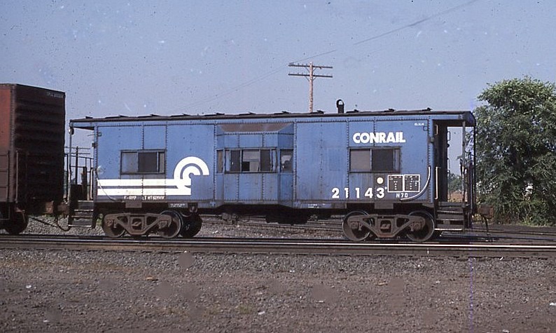 Conrail | Toledo, Ohio | Bay window caboose #21143 | ex Erie Lackawanna #324 | September 20, 1986 | Emery Gulash photograph | Stephen Timko collection