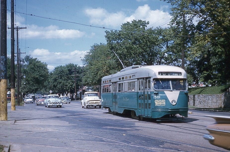 D.C. Transit | Washington, D.C. | PCC Streetcar #1501 | Route 30 at 17th and Pennsylvania Avenue | 1960 | Al Holtz photograph / collection
