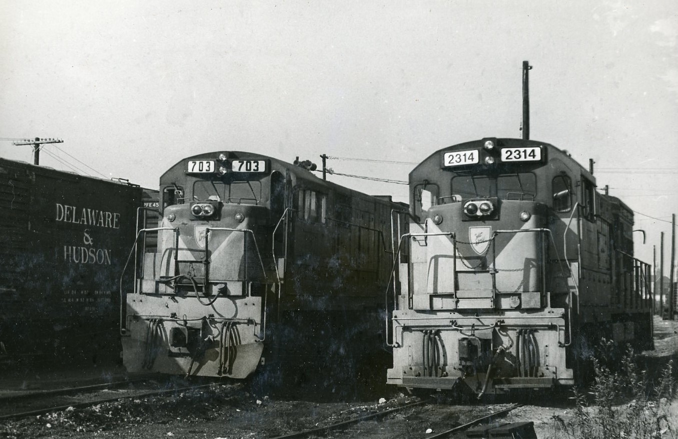Delaware and Hudson Railway | Wilkes Barre, Pennsylvania | GE U30C #703 and U23B #2314 diesel-electric locomotives | October 1973 | Ed Kaspriske photograph