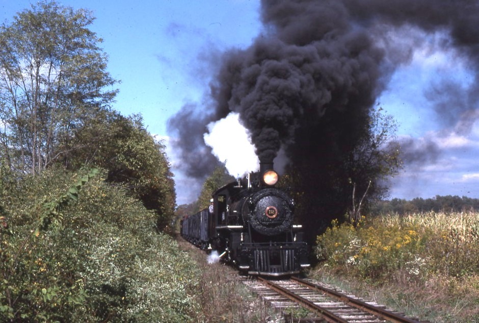 East Broad Top Railroad | Shirley Township, Pennsylvania | Baldwin narrow gauge 2-8-2 #17 steam locomotive | Passenger train | October 8, 1995 | Carl Perelman photograph | Frank Etzel collection