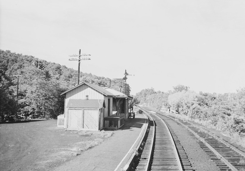 New York Central System | Eastview, New York | Putnam Division | Passenger station from rear of train | April 1958 | Fielding Lew Bowman photograph / collection