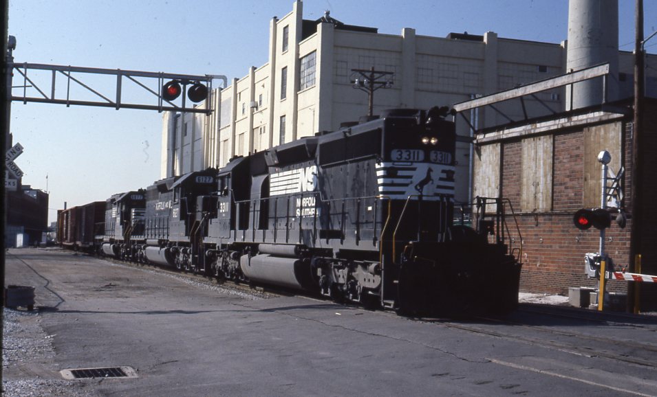 Norfolk Southern Corporation | Saint Louis, Missouri | EMD SD40-2 #3311 + engines 6127 and 6077 | freight | May 11, 1988 | Dick Flock photograph / collection