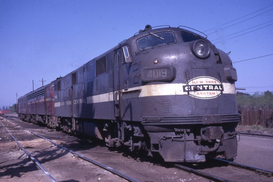 Penn Central Transportation Company | East Saint Louis, Illinois | ex New York Central EMD E7a #4019 + 2 PRR diesel-electric locomotives } May 5, 1968 | Richard Wallin photograph | Mitchell E. Dakelman collection