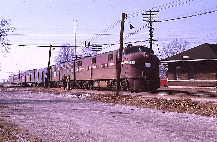 Penn Central Transportation Company | Effingham, Illinois | EMD E7a #4235 + E8a diesel-electric locomotives | Penn Texas | February 1971 | Ken Kulick photograph / collection