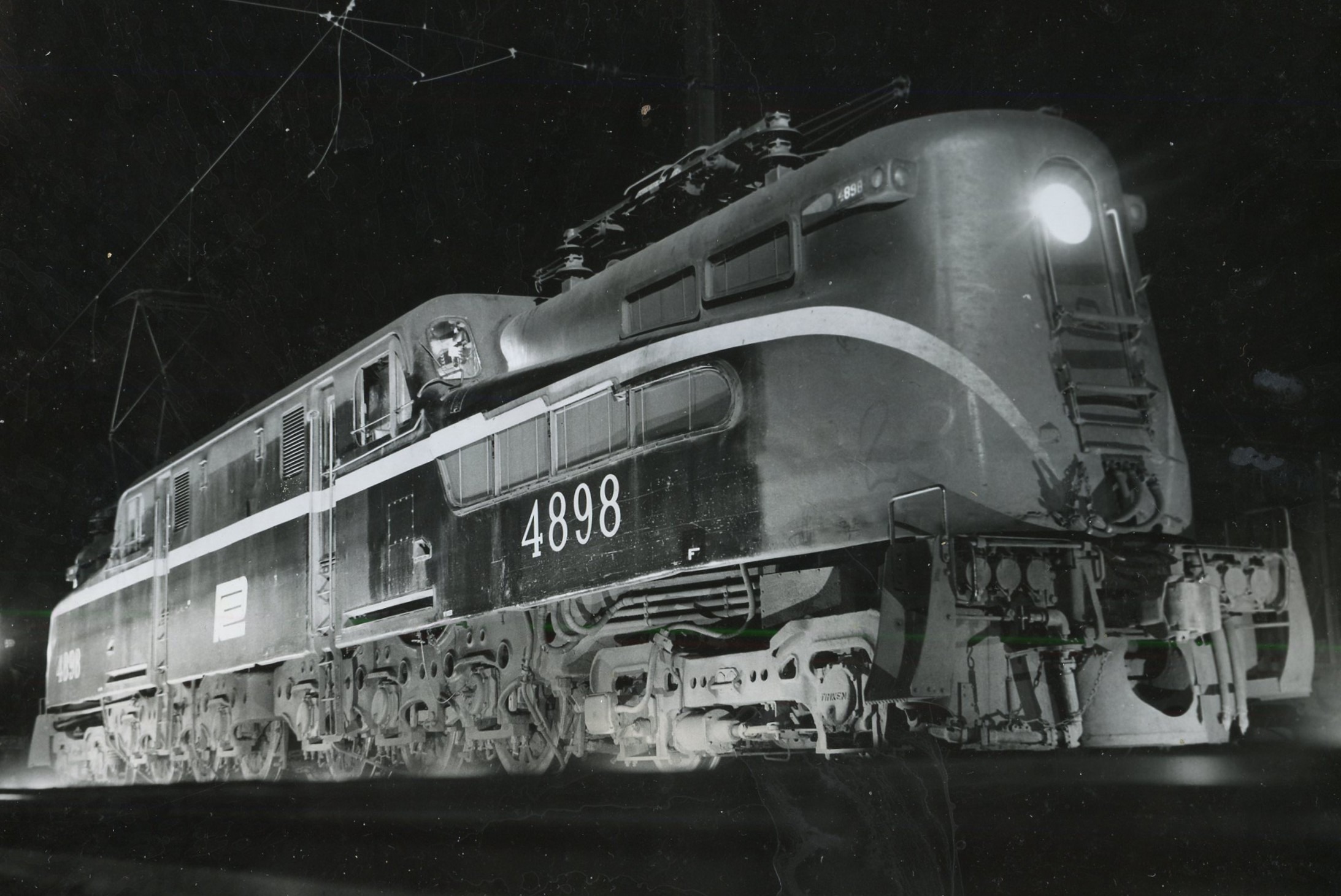 Penn Central Transportation Company | South Amboy, New Jersey | Altoona Works GG1 #4898 electric motor | Night view | April 1971 | Ed Kaspriske photograph / collection