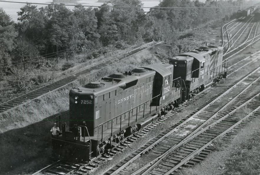 Penn Central Transportation Company | ex Pennsylvania Railroad | Enola, Pennsylvania | EMD GP9 #7252 and #7258 diesel-electric locomotives | September 1968 | Ed Kaspriske photograph / collection