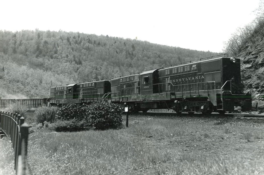Pennsylvania Railroad | Altoona, Pennsylvania | Horseshoe Curve | BLH RT624 #8954 + 1 diesel-electric locomotives | eastbound run to Altoona | 1958 | Ed Kaspriske photograph / collection