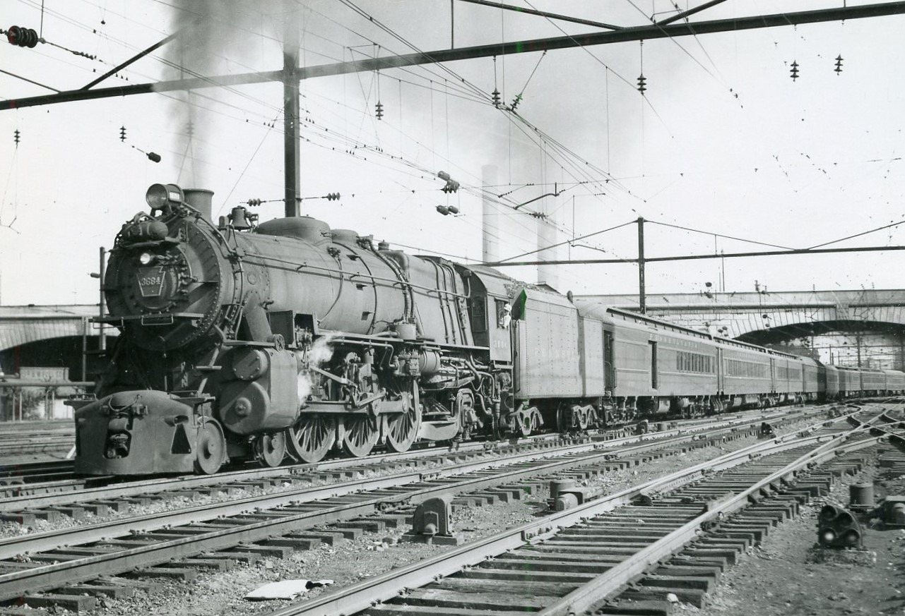 Pennsylvania Railroad | Harrisburg, Pennsylvania | Juniata Works Class K4s 4-6-2 #3684 steam locomotive | Westbound Train #47 | August 1948 | Bert Pennybacker photograph | Francis B. Landenberger Palmer collection
