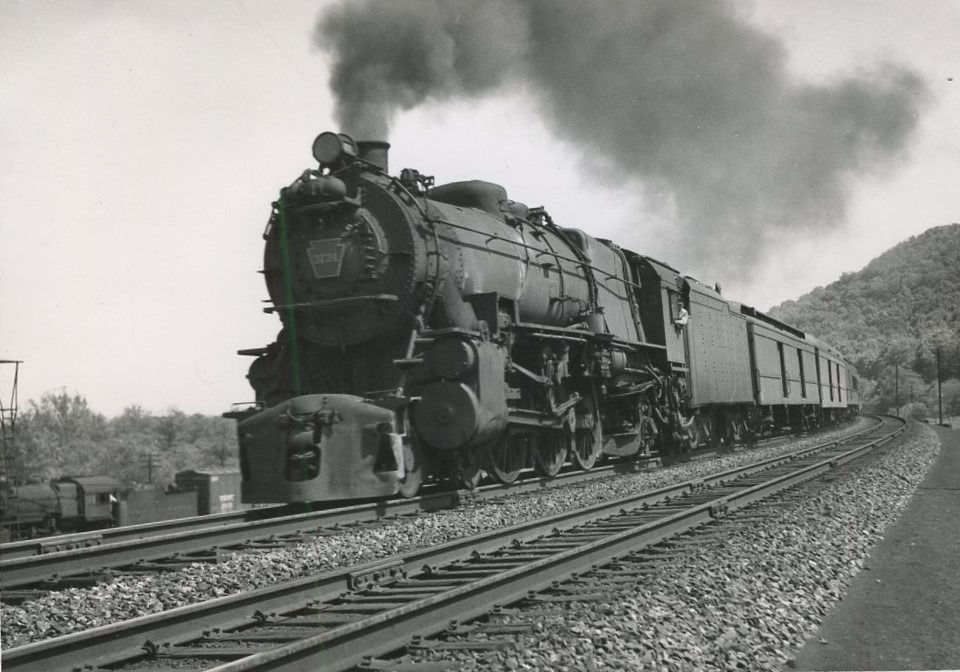 Pennsylvania Railroad | Marysville, Pennsylvania | Juniata Works K4s 4-6-2 #3734 steam locomotive | Westbound passenger train #19 | May 1948 | Francis B. Landenberger photograph / collection