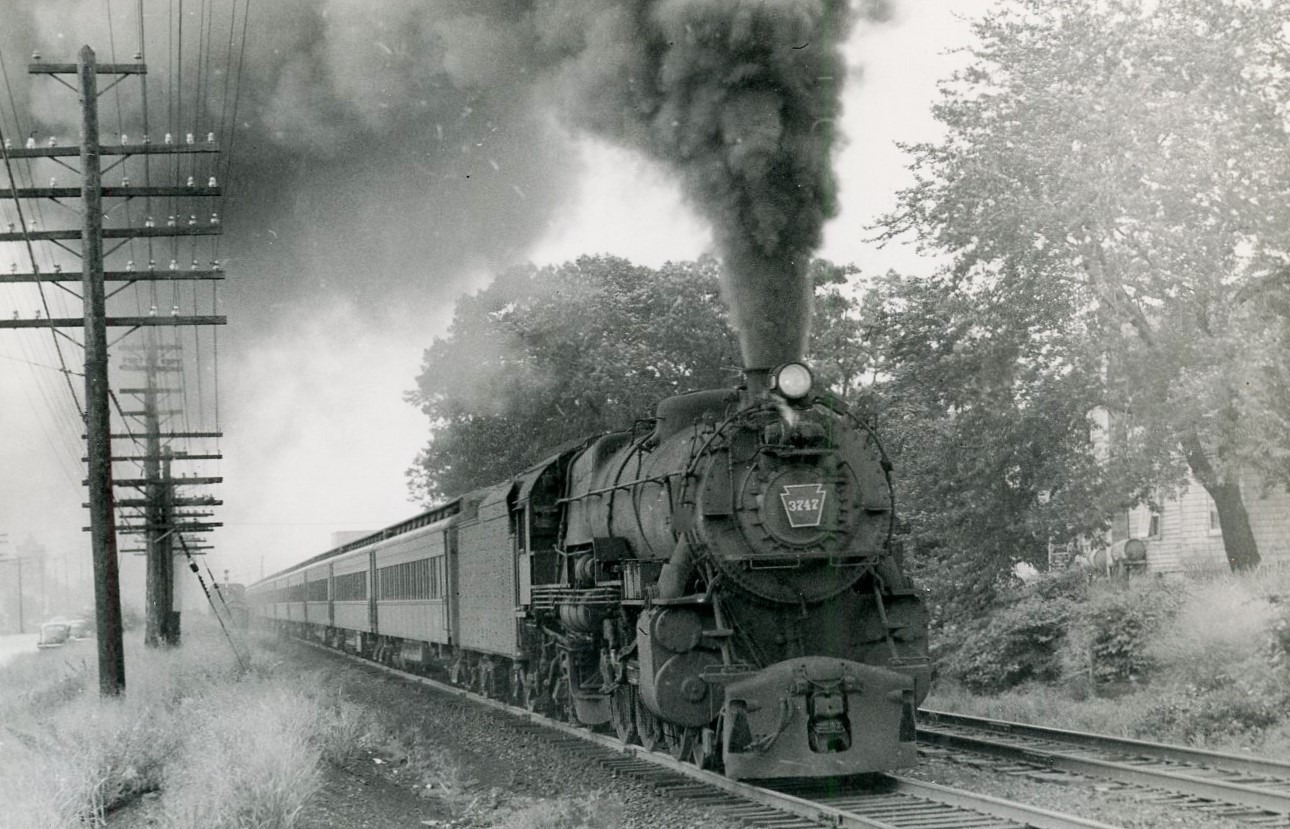 Pennsylvania Railroad | New York & Long Branch | Avon-by-the-Sea, New Jersey | Juniata Works class K4s 4-6-2 #3747 steam locomotive | Bay Head bound train | August 2, 1955 | T.M. Flattley photograph | Francis B. Landenberger Palmer collection