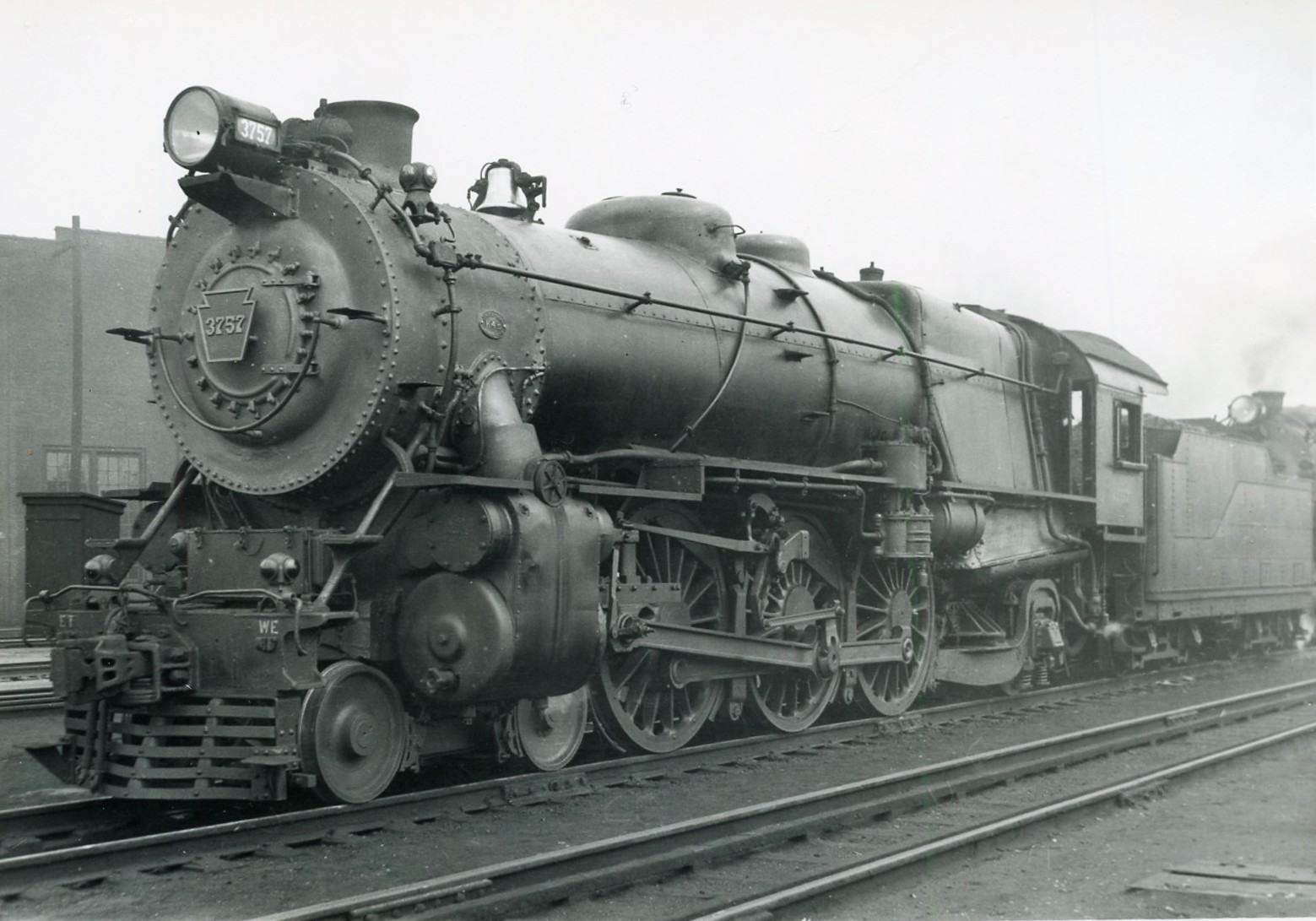 Pennsylvania Railroad | Philadelphia, Pennsylvania | Juniata Works K4s #3757 steam locomotive | 46trh Street locomotive facility | April 16, 1938 | T.M. Flattley, Jr. photograph | Francis B. Landenberger Palmer collection
