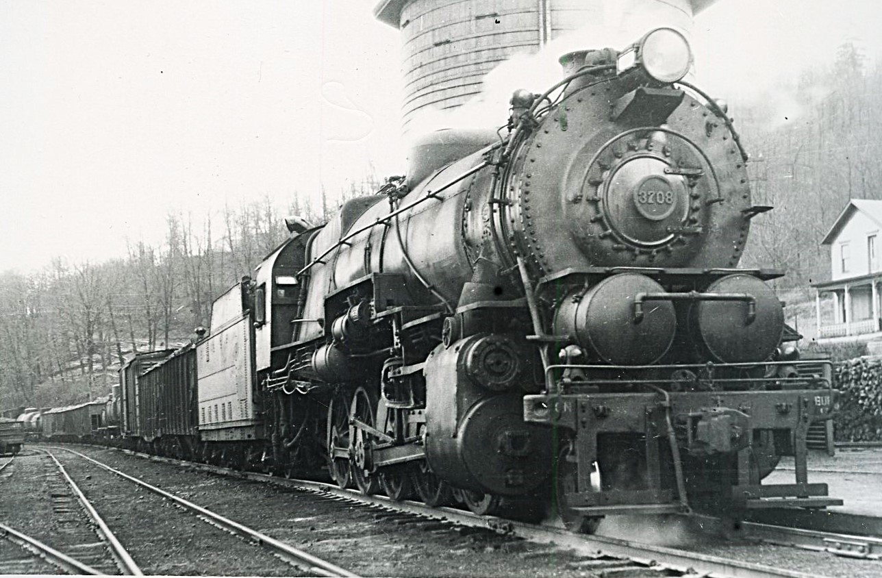 Pennsylvania Railroad | Tionesta, Pennsylvania | Juniata Works Class I1s 2-10-0 #3708 steam locomotive | freight train | 1949 | T.M. Flattley, Jr. photograph | Francis B. Landenberger Palmer collection