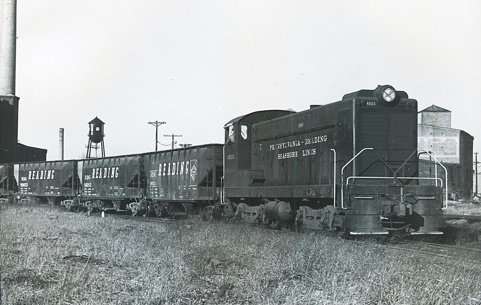 Pennsylvania Reading Seashore Lines | Camden, New Jersey | Baldwin S12 #6021 diesel-electric locomotive | switching Reading Bulsen Street Yard | January 1965 | Will Coxey photograph / collection | 5 x 7 BW print