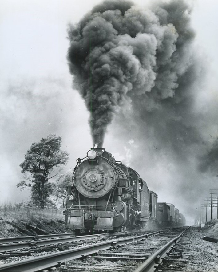 Pennsylvania Reading Seashore Lines | Pennsylvania Railroad | Stratford, New Jersey | Class H10s 2-8-0 #7797 steam locomotive | Clementon Branch freight | May 22, 1954 | R.L. Long photograph | West Jersey Chapter, NRHS Collection