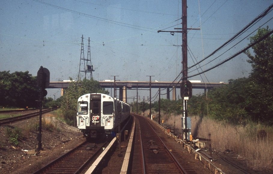 Port Authority Trans – Hudson Rail Line | PATH | Kearny, New Jersey | MU electric train set Eastbound | August 24, 2001 | Harold Smith photograph | Morning Sun Books collection