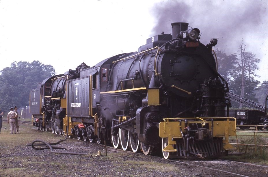 U.S. Army | Fort Eustice Military Railroad | Fort Eustice, Virginia | Baldwin class 2-8-0 #611 and #612 steam locomotives | September 1966 | William Barr photograph / collection r