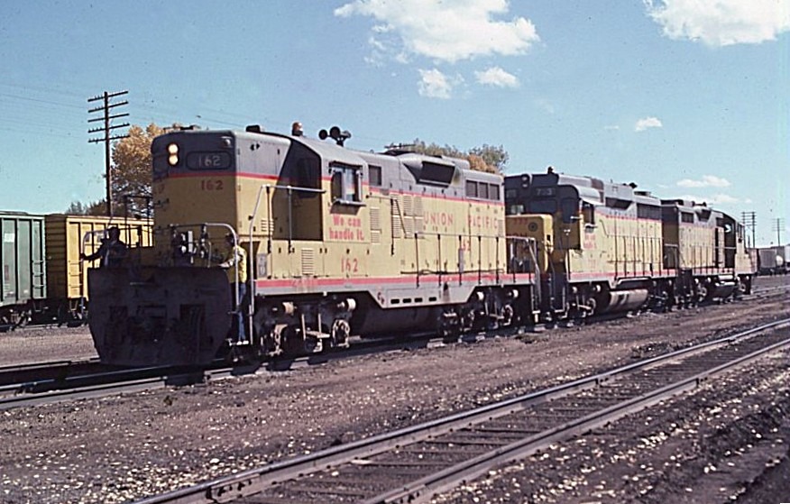 Union Pacific Railroad | Laramie, Wyoming | EMD GP9 #162, GP30 #733 and GP20 #475 diesel-electric locomotives | October 1, 1977 | John P. Wilson photograph / collection