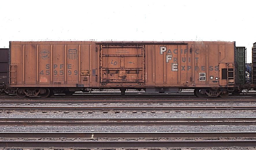 Union Pacific Railroad | Southern Pacific Lines | Pacific Fruit Express | Pasco, Washington | R70-24 Reefer box car #459599 | April 28, 1993 | Dick Flock photograph / collection